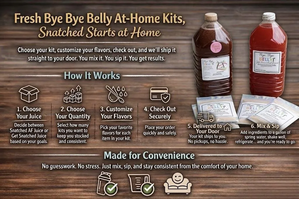 Our Bye Bye Belly At-Home Kits are designed for convenience without the guesswork.